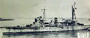 Following the ratification of the London Naval Treaty, the Imperial Japanese Navy decided to retire its existing obsolete minelayers, the former cruisers Aso, and Tokiwa. A replacement was budgeted under the Maru-1 Supplementary Naval Expansion Budget of 1931. The new vessel was to be of unprecedented size, thus overcoming the shortcomings of previous minelayers in the Japanese inventory in terms of range and capacity.[1] In addition to carrying 600 Type 6 naval mines, the new ship had the same guns as were used on the Japanese cruiser Yubari,[2] and also was equipped with an aircraft catapult, and a Kawanishi E7K reconnaissance seaplane.