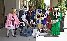Although anime can be considered by some as distinctly Japanese animation, some scholars and fans relate to them by their animated nature similar to the works of Walt Disney.[14] Researchers found that this created a subset of people that distinguish themselves from the similar subculture of Japanophiles.[15] The fandom originally proliferated using participatory media via the nature of fan-subbing anime, or the English subtitling of the original Japanese shows.[16] The fans of anime usually referred to as Otaku have been credited as the ones who ushered anime into America. Anime serves as a channel where many are initially introduced to Japanese culture and for others the only connection with Japan they can ever have.[17] Some avid fans however choose to go the extra mile of visiting Japan in person to experience the culture they have viewed through the world of anime in real life.[18] This voluntary labor connects people on a global scale as fans from all over the world participate in and benefit from the collective community's work. During the 1990s, industry officials viewed fan-subtitlers as useful to the budding Anime industry, as they used fan production to see where potentially profitable markets might lie.[15] Interviews from some of the earliest fansubbers reveal that most of them subscribed to an unspoken code that they should not make a profit from their illegal activities. However, most distributors did ask to be reimbursed for the cost of the tape and for shipping.[19] Whether through fansubbing or professional industry-translated anime and manga, the North American distribution of anime and manga has been primarily an import business for the Japanese-produced content. However, due to the nature of its roots, the fandom is better thought of as a hybrid of American and Japanese cultural notes.[20] It is also viewed that the current generation are using their intense love for anime, which is a cultural object to distinguish themselves from prior generations.[18]