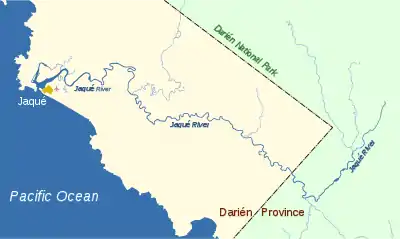 The Jaqué River is a river in the Darién Province of southern Panama. It flows generally westward from its source in the Darién National Park to the town of Jaqué, where it enters the Pacific Ocean.