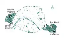 - French Wikipedia article fr:Jardin botanique de la Ville de Paris