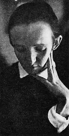 Kröschlová danced the role of the Harlequin in her 1926 choreography of Hračkové skříňky (The Toy Boxes) and the following year wrote the libretto and choreography for Bohuslav Martinů's La Revue de Cuisine (The Kitchen Revue).[4] The Charleston and Foxtrot numbers she staged for the production are some of the most acclaimed and requested for encore by audiences.[8] In 1928, she choreographed Obrazy z velkoměsta (Images from the City) to music by Modest Petrovič Musorgskij and the following year, she danced to two pieces by Saša Machov Marionety (Marionettes) and Čarodějná láska (Love of the Witch). Between 1929 and 1930, she choreographed a series of dances, in which she also performed, to the music of Bach, Beethoven and others. In 1930, she danced in Loupežník (Robbers) by Machov and the following year performed in the role of Pierot in Nikolaj Nikolaevich Jevrejnov's Veselá smrt (Merry Death). That same year, she wrote the libretto and choreography for a piece called Zelené flétny (Green Flute) based on a theme by Mozart.[4][1]