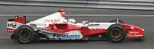 In 2005, early season podiums demonstrated Trulli's speed and at Indianapolis he took Toyota's first Formula One pole.[19] However, he, his teammate and the majority of the grid, did not enter the race due to using Michelin tyres, which were not safe to race.[20] For the vast majority of the year he outpaced his highly paid teammate Ralf Schumacher, but a late season dip in form saw him slip to seventh in the championship, two points behind the German.[21]