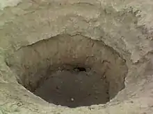 The mouth of a historical qanat in Jarqavieh Olya District, constructed during Safavid era (15th and 16th centuries)