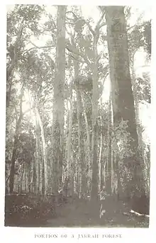 Jarrah (Eucalyptus marginata) is considered one of the best general purpose hardwoods in the world. The British started logging the jarrah forest in the 1840s to produce timber for use in construction, transport and power, and to protect water supplies.[22] Logging was largely unregulated until the release of the Forests Act of 1918.[5] The following 50 years saw forest management expand to include water quality and yield, soil management, rehabilitation of mined forest, recreation and nature conservation.[5] Today jarrah is harvested for high quality furniture and flooring.