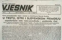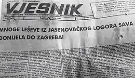 Shortly after the premiere, Krnić went through the Zagreb state archives and examined all the May 1945 issues of Vjesnik, the newspaper in question. He found that no such headline exists. Upon closer inspection, Krnić discovered that the headline seen in the film had been crudely doctored, likely using Photoshop, since the article seen below the doctored headline matches with another news story unrelated to Jasenovac. By comparing other articles present on the front page, Krnić concluded that the original issue of Vjesnik used for the forgery was published on 15 May 1945, and that nothing except the main headline was changed for the film, except the publication date itself, which was obscured in Sedlar's film by a faked damage effect.[36] Sedlar denied forging the headline and maintained that it was authentic.[37] In an interview for N1, a regional news channel, Sedlar said he paid an unnamed private collector in Belgrade to film his copy of the Vjesnik issue, adding that the people who own it are "thieves" who probably "stole it somewhere". He added that he does not own a copy himself.[38]