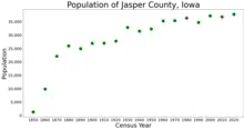 Jasper County is a county in the U.S. state of Iowa. As of the 2020 census, the population was 37,813.[1] The county seat is Newton.[2] The county was organized in 1846 and is named after Sergeant William Jasper, a Revolutionary War hero.[3]