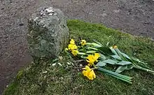 The small burial mound is at the side of a minor road, about 1 mile (1.6 km) north west of Hound Tor, at the entrance to a green lane that leads to Natsworthy. Fresh flowers are regularly placed on the grave, although no-one admits to putting them there.[1][2][3]
