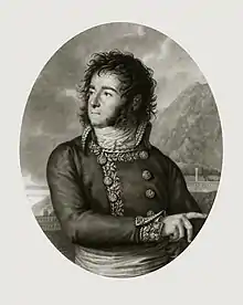 He reentered military service during the War of the Pyrenées against Spain with the rank of captain of the mountain chasseurs. On 30 August 1793, he was promoted to the rank of brigadier general and fought with the Army of the Eastern Pyrenées, distinguishing himself during the capture of Spanish Cerdanya under the orders of General Dagobert de Fontenille. He then joined the Army of the Western Pyrenées from 1794 to 1795, where he was promoted to the rank of divisional general. He won numerous victories against the enemy forces, particularly on 12 August 1794 at Sainte-Engrâce and Olloqui, on 4 September 1794 at Lescun, on 24–25 November 1794 at Orthez, and on 12 May 1796 during the attack on enemy positions between Glossua and Elgoibar, where he made many prisoners.[3] On 9 June 1795 he was dismissed for political motives by représentants en mission, special envoys of the National Convention, before being definitively reinstated on 13 June of the same year.[2]