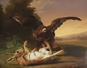 He sent his works to various exhibitions organized in his home country. He sent the Royal Eagle about to snatch a lamb to the Brussels Salon of 1811, the Monkey and the Cat to the Ghent Salon of 1812, Dogs and Swans to the Ghent Salon of 1814, Stags and Hinds in a Forest to the Brussels Salon of 1821, a Landscape with an Oxen Cart to the Amsterdam Salon of 1822 and Resting Animals and Figures to the Ghent Salon of 1823. His works fetched high prices and were collected throughout Europe. At the Paris Salon of 1814 he exhibited the painting Romulus and Remus suckled by the she-wolf.[9] This harmless painting became politically charged at one point when Berré produced copies of it showing an imperial eagle killing all kinds of animals.[5]