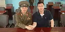 After becoming a French citizen he was opened to North Korean connections in Europe by meeting a North Korean agent Oon Yung.[2] This led to his political defection from South Korea to North Korea, becoming an associate of Kim Jong-il whom he met and says was like a father figure for him.[3] He actively worked for the North Korean authorities for 11 years, visiting Pyongyang several times. He served time as a foreign correspondent of Rodong Sinmun.