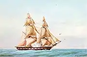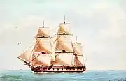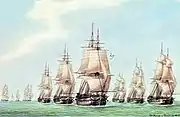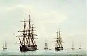 After 18 months, Willaumez transferred his flag on the frigate Poursuivante, on which he served successively at the Western and Southern stations, and carried out a number of raids against the Haitian revolutionaries.[16] On 27 June 1803, Poursuivante departed Les Cayes, bound for Cap-Haïtien,[16] in the company of the sixteen-gun corvette Mignonne,[19] under Jean Pierre Bargeau.[20]
