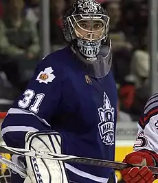 Originally sharing the starting role with the Marlies with Tellqvist, the departure of Trevor Kidd as the prime back-up spot on the Leafs earned Tellqvist a promotion, with Racine earning the starting spot. The signing of Jean-Sébastien Aubin to the club, however, led to the two splitting the games 50/50. With the groin injury of Ed Belfour on December 12, 2005, Aubin was recalled to back up Tellqvist. Racine continued with the Marlies until 2007 when he joined Sherbrooke St. Francois of the LNAH.[1]