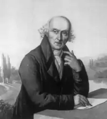 Morel was the architect in charge at Ermenonville from the mid 1760s.[4] He enjoyed a long career that was focused almost entirely on garden design. He worked on some four dozen parks and gardens, including Guiscard, Arcelot, Couternon, Ermenonville, Casson, Launay and La Malmaison. His popular treatise offers extensive descriptions of Guiscard and Ermenonville, as illustrative examples. Where we have documentation, as at Ermenonville, it appears that Morel claims more credit for its design than is due. Of all French gardeners of the picturesque school, he stood furthest from the fashionable and decorative Anglo-chinois aspects of garden design, with its crowded and petty effects, and advocated a broader, plainer style, both morally meaningful and more directly imitative of nature.[5] Morel coined the French term for the landscape professional, architecte-paysagiste, as early as 1804; his ideas were far more influential on the later landscape style of the early nineteenth century than on his immediate contemporaries.