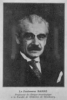 Jean Alexandre Barré (25 May 1880, Nantes – 26 April 1967, Strasbourg) was a French neurologist who in 1916 worked on the identification of Guillain-Barré-Strohl syndrome,[1] as well as Barré–Liéou syndrome.[2]