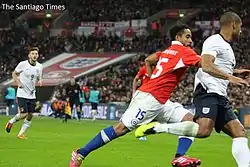 He made his senior debut in a friendly against Mexico in the United States on 18 February 2004, and made the assist for Reinaldo Navia's goal in a 1–1 draw.[62] He played twice more that year, but did not appear again until 2008.[63] His first international goal came on 10 June 2009 in a 4–0 defeat of Bolivia at the Estadio Nacional in a World Cup qualifier.[64]