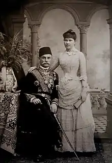 In July 1881 at the age of 46 and with 31 years in the diplomatic service, he was appointed Minister Plenipotentiary in The Hague and simultaneously in Stockholm where he became a well known personality in diplomatic circles and high society.[2] He died in 1894 as minister for The Hague and Stockholm and was buried in the Orthodox chapel of the family castle in Bovigny, Belgium.[3] From his 44 years in the Imperial Ottoman service, he lived only 2–3 years in Turkey.[4]