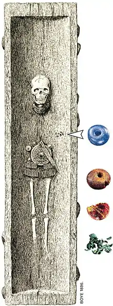 Varburg's sketch of where the beads were found