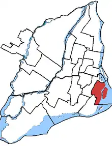 ![]() Jeanne-Le Ber in relation to other electoral districts in Montreal | |