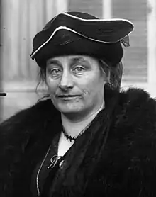 The Comité d'Action Suffragiste (CAS) was created in December 1917, directed by Jeanne Mélin, Marthe Bigot and Gabrielle Duchêne. The CAS organized meetings to which they tried to attract workers, for example by showing films. As well as agitating for women's suffrage, the CAS wanted to organize a referendum to end the fighting.[9] The CAS members did not agree with the UFSF, which openly supported the Union sacrée and took an aggressive nationalist stance in support of the war.[4] At a CAS conference on 7 March 1918 Mélin and Monette Thomas outlined a new constitution for France based on universal suffrage for women and men. It called for men and women to collaborate in rebuilding the cities that had been destroyed and to define new social and international laws. In the 1920s the Women's International League for Peace and Freedom (WILPF) would take up this cause. However, the CAS was unable to make its voice heard by the politicians.[10]