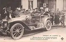 When the WWI broke out, Macherez ran the Hospital Auxiliary #201, which had 10 ambulances.[3] The Germans arrived in Soissons on 1 September 1914. An officer, looking for supplies, enters the city and demanded to speak to the mayor. He threatened that if the mayor does not give himself up, the city will be sacked, burned. Macherez spoke up: "The mayor? It's me!". For twelve days, she was the interlocutor of the Germans. She negotiated everything, managed to minimize the negative fallout of this occupation, and protected the region from German abuses and looting. On 12 September 1914, at the end of the First Battle of the Marne, the Germans were forced to release their hold on Soissons, and occupy only the right bank of the Aisne. Macherez resumed her duties in the hospital alongside a Parisian, Germaine Malaterre-Sellier.[3] The prefect of the Aisne, Robert Leullier then appointed Georges Muzart to be the mayor of Soissons. The role held by Macherez was praised by some, and minimized by others. She claimed nothing, only observing that it is the circumstances that led her to take this role.[1][2][3]