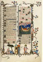 Detail of the Belleville Breviary, 1323-26 kept at the Bibliotheque Nationale, Paris. (MS. Lat. 10484, folio 37 recto) - The Treaty of Westminster of 1353, although the original document is lost, some details are known, such as a very particular clause stating that "The titles of property in Brittany are to be restored as they were before the war. If Englishmen are married to Breton Heiresses they must not be disturbed in their rights, and an amnesty is to be granted to all adherents of Montfort."
