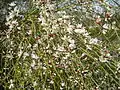 In marked contrast to the aridity prevailing in most of Libya, there are forested areas in this region totalling around 3200 km², although approximately a third of the original forest has already been destroyed to make way for agriculture. In addition to the forests there are also large areas of maquis and steppe-like vegetation. Typical maquis species are the Phoenician juniper (Juniperus phoenicea), the mastic tree (Pistacia lentiscus), the Kermes oak (Quercus coccifera) and the carob tree (Ceratonia siliqua). In the drier steppe-like areas, branched asphodel (Asphodelus ramosus), prickly burnet (Sarcopoterium spinosum) and white wormwood (Artemisia herba-alba) predominate.[6] More than half of the endemic plant species in Libya are to be found in the Jebel Akhdar and, of these, seven are found only in the region: Arbutus pavarii, Arum cyrenaicum, Bellis sylvestris var. cyrenaica, Cyclamen rohlfsianum, Cynara cyrenaica, Onopordum cyrenaicum and Romulea cyrenaica. [7]