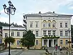 The oldest mention of Jedlinka dates back to the 13th century, to the reign of Duke Bolko I the Strict of the Polish Piast dynasty.[2] It was a settlement of lumberjacks, and its name refers to the fir forests growing here.[2] In the 18th century a mineral spa was founded in the Jedlinka estate.[3] It was named Charlottenbrunn by its founder in honour of his wife Charlotte von Seherr-Thossa. In 1737 a spa house and other buildings were built.[3] Later on, the village became a centre of textile trade.[3] Four fairs a year took place here.[3] In 1742 the settlement was annexed by the Kingdom of Prussia. In 1768 it was granted town rights. In the 19th century the spa town often changed its owners, which slowed its development.[3] In the interwar period there were six hotels and about 30 pensions in the town.[3] During World War II, in 1944, the Germans established a labor camp, which was a branch of the Gross-Rosen concentration camp, in the town.[3] After Nazi Germany's defeat in World War II the town became once again part of Poland and was renamed Jedlina-Zdrój. The suffix "Zdrój" is typical for names of spa towns in Poland.