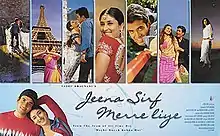 Jeena Sirf Merre Liye (transl. Live only for me) is a 2002 Indian Hindi romance film starring Tusshar Kapoor and Kareena Kapoor in the lead roles. It is directed by Talat Jani and produced by Vashu Bhagnani. The film is an official Hindi remake of the 2001 Telugu film Manasantha Nuvve which itself was a remake of Anmol Ghadi (1946).