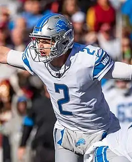 On September 17, 2019, Driskel was signed by the Detroit Lions.[29] On November 10, 2019, Driskel made his first start for the Lions against the Chicago Bears after Matthew Stafford was inactive due to injury.[30] He finished the Week 10 contest with 269 passing yards, one touchdown, and one interception as the Lions lost 20–13.[31] In Week 11 against the Dallas Cowboys, Driskel threw for 209 yards and two touchdowns and rushed for 51 yards and a touchdown in the 35–27 loss.[32] After suffering a hamstring injury during a loss to the Washington Redskins, Driskel was placed on injured reserve on November 30, 2019.[33]