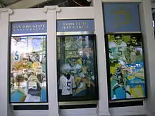 In 1990, Garcia transferred to San Jose State University and redshirted his first year there. From 1991 to 1993, Garcia was starting quarterback on the San Jose State Spartans football team.[5] Under Garcia, San Jose State went 6-4-1 in 1991,[6] 7–4 in 1992,[7] and 2–9 in 1993.[8] In 1991, Garcia had a career-high 61.9% completion rate at San Jose State with 99-for-160 passing for 1,519 yards, 12 touchdowns, and 5 interceptions. He passed for 2,418 yards in 1992 on 209-for-371 passing with 15 touchdowns and 11 interceptions and a career-high 2,608 yards in 1993 on 196-for-356 passing, 21 touchdowns, and 16 interceptions.[9] For his junior season in 1992, Garcia earned UPI All-America honors. As of 2007, Garcia had the most career offensive yards (7,274) in San Jose State history.[10]