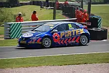 In 2012 he raced an NGTC Honda Civic for Pirtek Racing.[4] He started on pole position for the reverse grid race at Donington Park but finished fifth having had a slow start and losing the lead before the first corner. He took his first podium finish in the series at Knockhill with a second place finish in race three.[5] In the wet conditions of race three at Rockingham, he lost control of the back of his car on the high speed banking and spun into the concrete wall. He escaped unhurt but the car was severely damaged at the rear.[6] His car was re–shelled before the next round at Silverstone.[7]