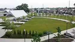 On the Jeffersonville side of the bridge the city constructed Big Four Station, a plaza and park. The park features green space, fountains, a farmers market on Saturdays, a restroom, a bike-sharing station, a pavilion, a playground, and easy access to downtown shops and restaurants.[30] Big Four Station is also the home of the annual Abbey Road on the River, the largest Beatles-inspired music festival in the world, as well as other annual celebrations.[31]