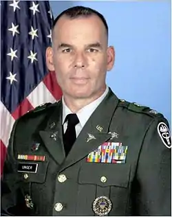 Unger’s awards and decorations include the Defense Superior Service Medal, Legion of Merit, Meritorious Service Medal (6 OLC), Joint Meritorious Service Medal, Joint Service Commendation Medal, Army Commendation Medal (6 OLC), Army Achievement Medal (5 OLC), Armed Forces Expeditionary Medal, Kuwait Liberation Medal (Kuwait), Korea Service Medal, National Defense Service Medal and the Humanitarian Service Medal. He wears the Expert Field Medical Badge. Unger is authorized to wear both the Joint and the Army Staff Identification Badge.