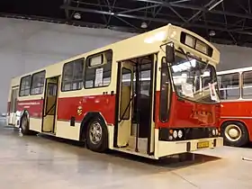 In the beginning of the 1970s, the authorities of Polish People's Republic decided to upgrade their city transport fleet.[1] For this purpose between 1970–1972 the authorities conducted trials of different models of buses in Warsaw. Buses such as: Hungarian Ikarus 242, West German Magirus-Deutz M170-S11H, French Berliet PR100, Italian FIAT 420A, British-Danish Leyland Lidrt 12/4 Worldmaster, Spaniard Pegaso 5023, Japanese Hino RC620 and Czechoslovak Karosa SM11 took part in the trials.[2] Berliet PR110 was the most successful vehicle of all tested.[3] From the very beginning this model was considered as temporary solution because of different transportation needs back then. PR110’s original design was later modified by adding third set of doors. New Jelcz PR110 was a 12 meters long bus with three sets of doors in a standard model.[4] Approximately 50% of parts used to assemble Jelcz PR110 were imported directly from France.[5]