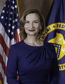 Jelena McWilliams (née Obrenić; born July 29, 1973)[1] is a former Chairman of the Federal Deposit Insurance Corporation. She was nominated to the position and to the FDIC Board of Directors by President Donald Trump, and the Senate confirmed her appointment on May 24, 2018.[2] She was sworn in as Chairman on June 5, 2018. Previously, McWilliams was executive vice president and chief legal officer of Fifth Third Bank in Cincinnati, Ohio. She resigned from her position as Chairman of the Board of the FDIC on February 4, 2022.