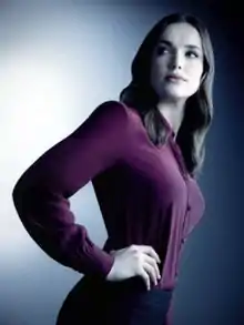 In November 2012, Elizabeth Henstridge was cast as Jemma Simmons.[38] She described her character as "a biochem expert. She's young and hungry and she's a great woman to play because she's intelligent and focused and curious and she doesn't apologize for it. She's got a wonderful relationship with Fitz. They kind of bounce off each other."[39] After the reveal during the season two premiere that Fitz was just imagining Simmons in the episode, Henstridge explained that the showrunners "tell you what you need to know to act your scenes, but anything after that, you never know."[40] For Simmons' costume design, Foley tried to have her clothes reflect her personality, without "getting too cliché...we mix the hard with the soft—we combine the feminine elements like peter pan collars, silk blouses and florals with the masculine touches like ties".[41] Ava Mireille portrays a younger Simmons.[42]