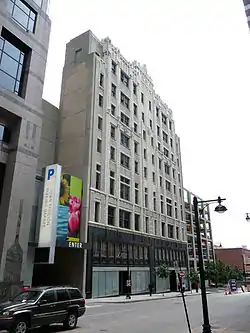 The building was constructed in two phases. A six-story building, built in 1911-12, was enlarged in 1931-1932 with an eight-story, south unit. As part of the enlargement, two additional stories were added atop the 1911-1912 unit. The building, constructed on level grade, faces west onto Walnut Street. Modernistic in style, the building is an amalgam of Late Gothic Revival and Art Deco design elements. The most ornate area of the building's exterior; is the west facade, with embellishments and eighth story step-backs creating a strong vertical and rectilinear effect.[3]