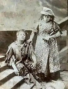 Jennie Lee (c. 1854[1][2] – 3 May 1930) was a Victorian Era English stage actress, singer and dancer whose career was largely entwined with the title role in Jo, a melodrama[3] her husband, John Pringle Burnett,[4] wove around a relatively minor character from the Charles Dickens novel, Bleak House. She made her stage debut in London at an early age and found success in New York and San Francisco not long afterwards. Lee may have first starred in Jo around 1874 during her tenure at San Francisco's California Theatre, but her real success came with the play's London debut on 22 February 1876 at the Globe Theatre in Newcastle Street. Jo ran for many months at the Globe and other London venues before embarking for several seasons on tours of the British Isles, a return to North America, tours of Australia and New Zealand and later revivals in Britain. Reduced circumstances over her final years forced Lee to seek assistance from an actor's pension fund subsidised in part by proceeds from Royal Command Performances.[5][6]