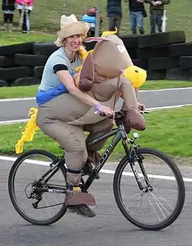 ![]() Tinmouth approaching the Mountain section at Cadwell Park during a charity bicycle mass-gathering in 2010, a yearly traditional happening during the August race meeting | |||||||||||