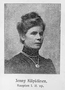 She contested the 1907 elections on the Social Democratic Party's list in Kuopio East and was one of 19 women elected to parliament. She was the youngest member of the first parliament,[2] and was also pregnant when taking office, becoming the first woman to take maternity leave while in parliament. However, she lost her seat in the 1908 elections.[1] During her time in parliament she sat on the Finance Committee and the Grand Committee.[1]
