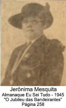 Jerônima Mesquita (30 April 1880 – 1972) was a Brazilian feminist. She is regarded as the pioneer of the women's movement in Brazil, and co-founded the Federação Brasileira pelo Progresso Feminino with Berta Lutz and Stela Guerra Duval in 1922.[1]