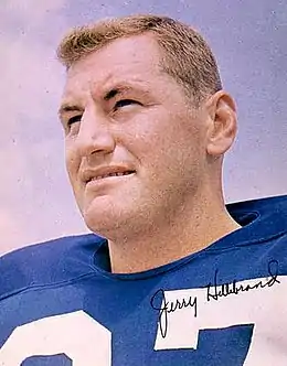 Gerald John Hillebrand (born March 28, 1940 in Davenport, Iowa) is a former American football linebacker who played nine seasons in the National Football League for the New York Giants, St. Louis Cardinals, and the Pittsburgh Steelers. He played college football and was drafted in the first round (twelfth overall) of the 1962 NFL Draft. Hillebrand was also selected in the second round of the 1962 AFL Draft by the Denver Broncos.