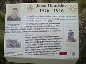 Jesse Handsley (29 March 1876 – c. 3 June 1916) was an able seaman who served with distinction under Captain Robert Falcon Scott on Scott's first expedition to the Antarctic regions; the Discovery expedition of 1901 to 1904.