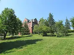 Jesse R. Hepler was acting chairman of the horticulture department in 1938, and suggested establishing a lilac arboretum on the slope behind Thompson Hall, a site that became known as Lilac Hill. It was dedicated in 1940, and in 1948 many of the research species were relocated there.[2] It had 100 varieties of lilac (Syringa species) in seven color classes.[3] By 1980, the genetic range had diminished due to cross breeding, and the decision was taken to uproot the arboretum. The lilac is the state flower of New Hampshire,[4] and the plants were offered to the campus community. Lilac lovers wanting plants for their gardens cleared the site within 90 minutes.[2] The continuing research into lilacs was moved to the UNH Horticultural Research facility at Woodman Farm, Spinney Lane, in Durham (at 43.1513°N 70.9440°W).