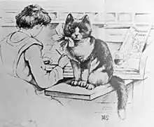 ![]() The Animals' Friend Cat Book mentions an office cat called Tibby who is depicted in an illustration alongside a writer/illustrator who is potentially Jessey Wade. | |