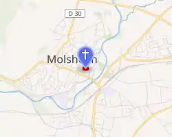 Molsheim's Jesuit College was founded in 1580 and dissolved in 1765. It served as Alsace's main university between 1618 and 1704, preceding the Lutheran Strasbourg University in importance. The church's construction was funded by the bishop of Strasbourg, Archduke Leopold V of Austria, who made a donation on his name saint's day, 15 November 1614. Although a chapel inside is dedicated to Ignatius of Loyola, the church was dedicated from the start to the Holy Trinity (Heilige Dreifaltigkeit).[2][4] It became the parish church of Molsheim and was dedicated to Saint-George in 1791,[3] after the demolition of the city's former parish church, the previous Église Saint-Georges, on what is now the town's current market square (Place du marché).[5]