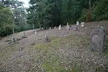 The cemetery is located north of Jestädt, on the east side of the Motzenroder Straße [ "Motzenrod Road" ], about 547 yards ( 500 meters ) from the outskirts of the village. It runs along the slope to the edge of the forest. There are 170 graves in the cemetery.