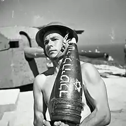 The Jewish Infantry Brigade Group,[2] more commonly known as the Jewish Brigade Group[3] or Jewish Brigade,[4] was a military formation of the British Army in the Second World War. It was formed in late 1944[2][3] and was recruited among Yishuv Jews from Mandatory Palestine and commanded by Anglo-Jewish officers. It served in the latter stages of the Italian Campaign, and was disbanded in 1946.