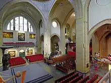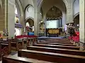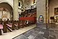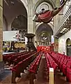 The movable parts of the interior originate from the previous church. There is a baroque pulpit from 1635 by Erasmus Quellinus, with an eighteenth century sounding board. The balcony before the organ is also baroque and was bought in Antwerp in 1804. Several statues date from the eighteenth century, as well as an oak communion bench. Two confessional booths date from the seventeenth, and two date from the nineteenth century. A pneumatic organ by Michaël Maarschalkerweerd was bought in 1900. The baptismal font dates from the early nineteenth century.[8] The tower has a mechanic clock which is wound up by electricity, but this no longer functions in this way.
