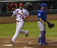 On November 24, 2013, Peralta signed a four-year contract worth $53 million with the St. Louis Cardinals. Featuring a declining salary structure, the contract commenced with his salary at $15.5 million in 2014, then $15 million, $12.5 million, and finally $10 million in 2017.[25] Without a qualifying offer from the Tigers, the Cardinals were not obligated to return a first-round draft pick.[26][27]